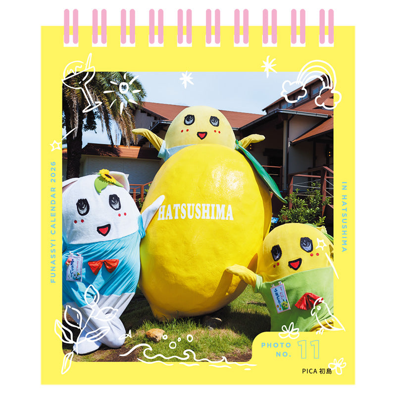 2026年版 ふなっしーカレンダーは、ふなっしーファミリーみんなで初島に初上陸!