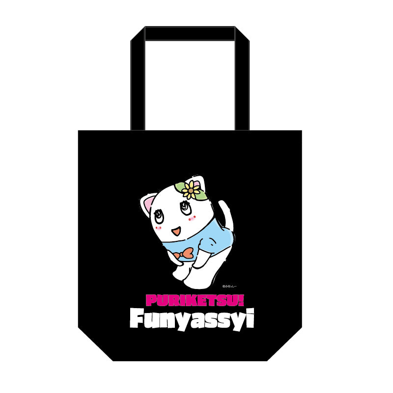 ぷりけつデザインがプリントされた黒色のトートバッグです。