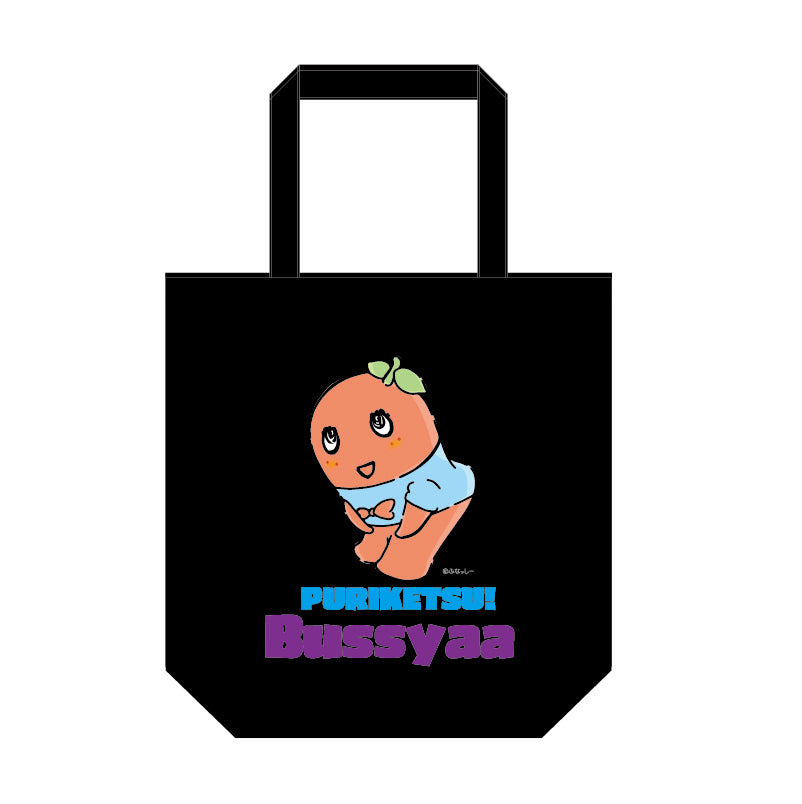 ぷりけつデザインがプリントされた黒色のトートバッグです。