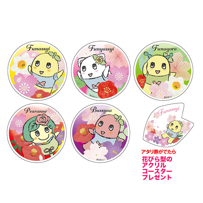 桜ふなっしーデザインのコースターにもなるアクリルプレート!透明感がたまらなくいい感じです。全5種、どれが出るかはお楽しみに♪