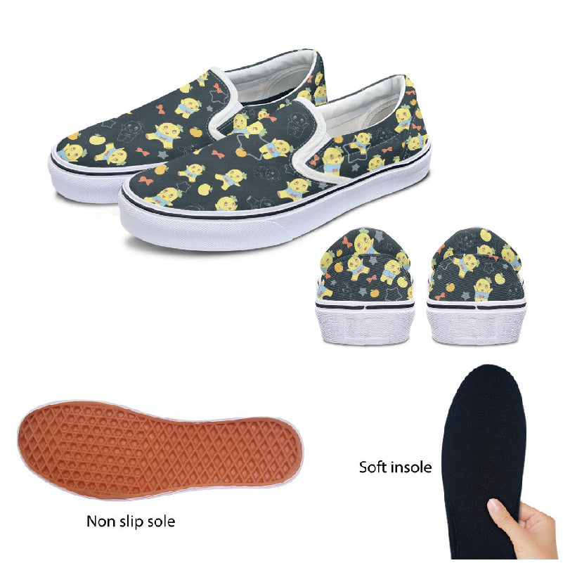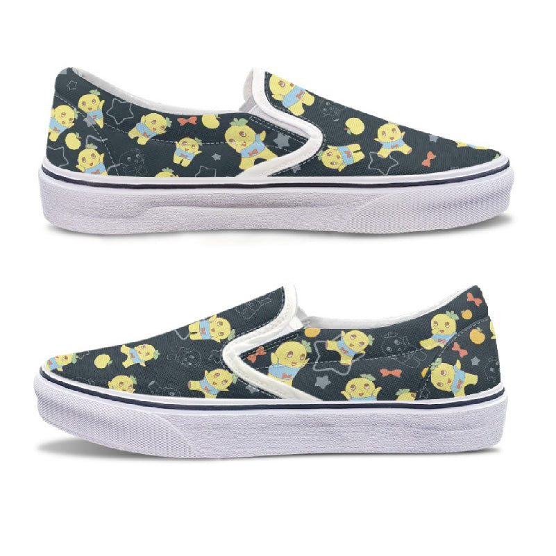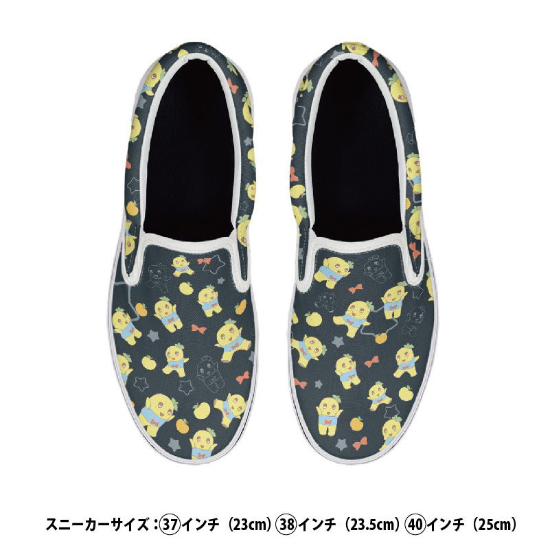 黒系のふなっしーデザインのスリッポンです。