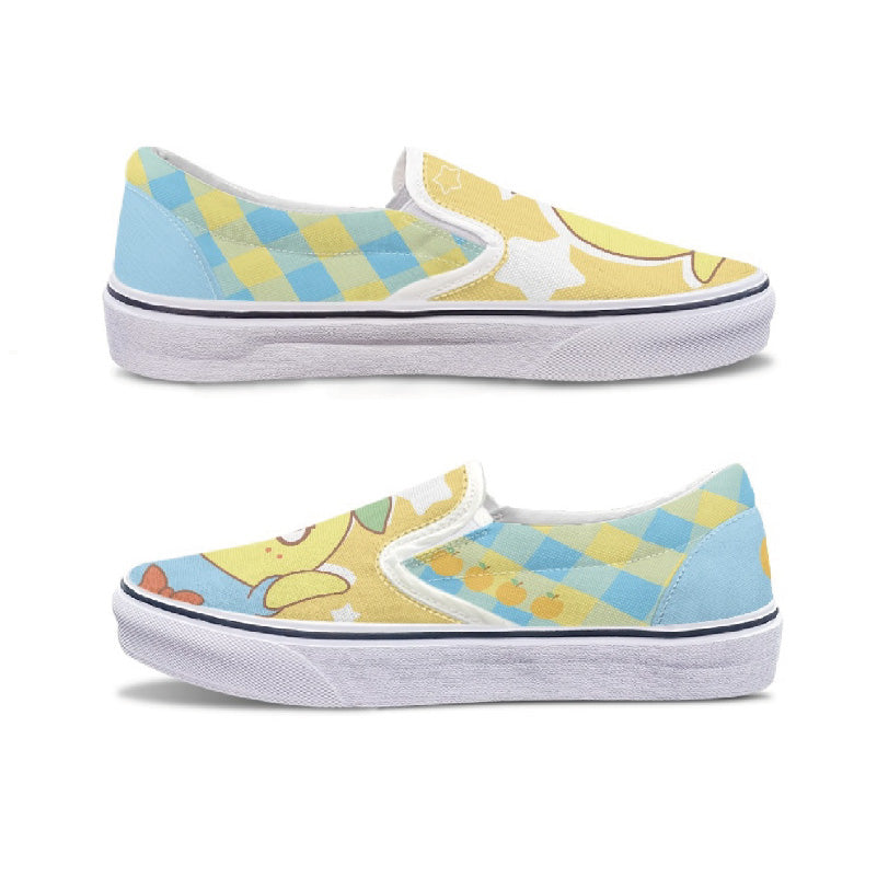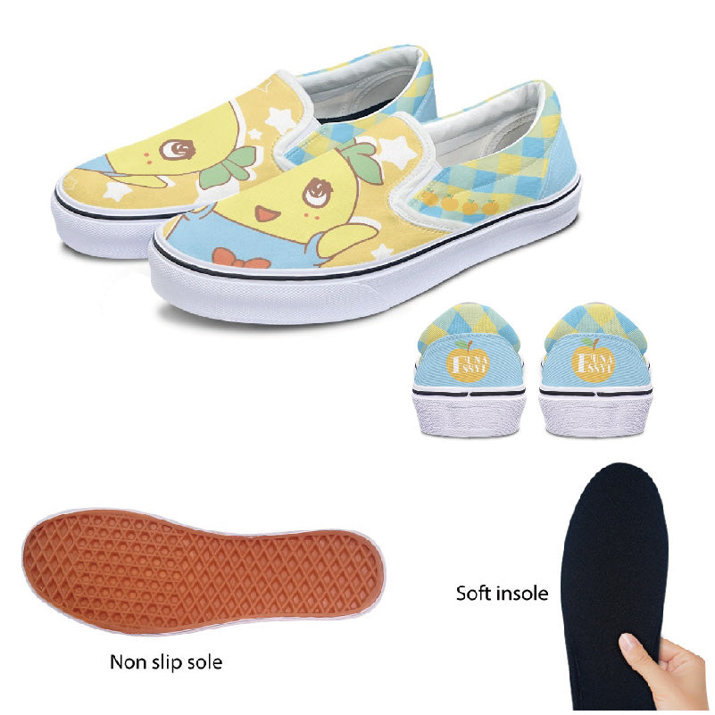 ふなっしーカラーの明るいデザインのスリッポンです