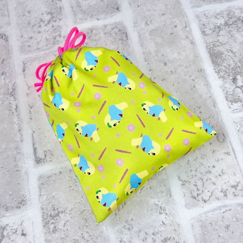 ふなっしーの春を呼ぶ儀式「春をよぶケツゴボウ」をイメージした巾着です♪