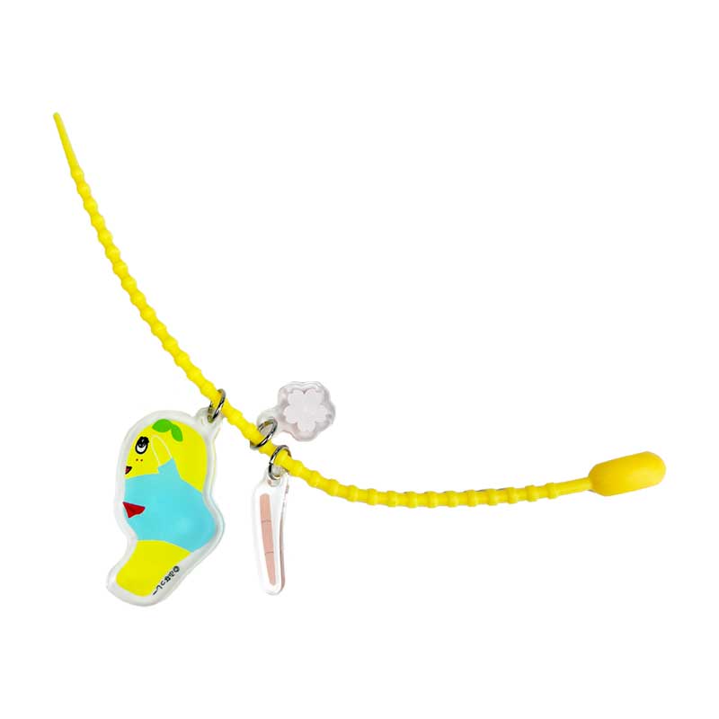 付属のアクリル以外にも、お気に入りのキーホルダー等を一緒にカラーループに通してジャラジャラさせるのもオススメです。