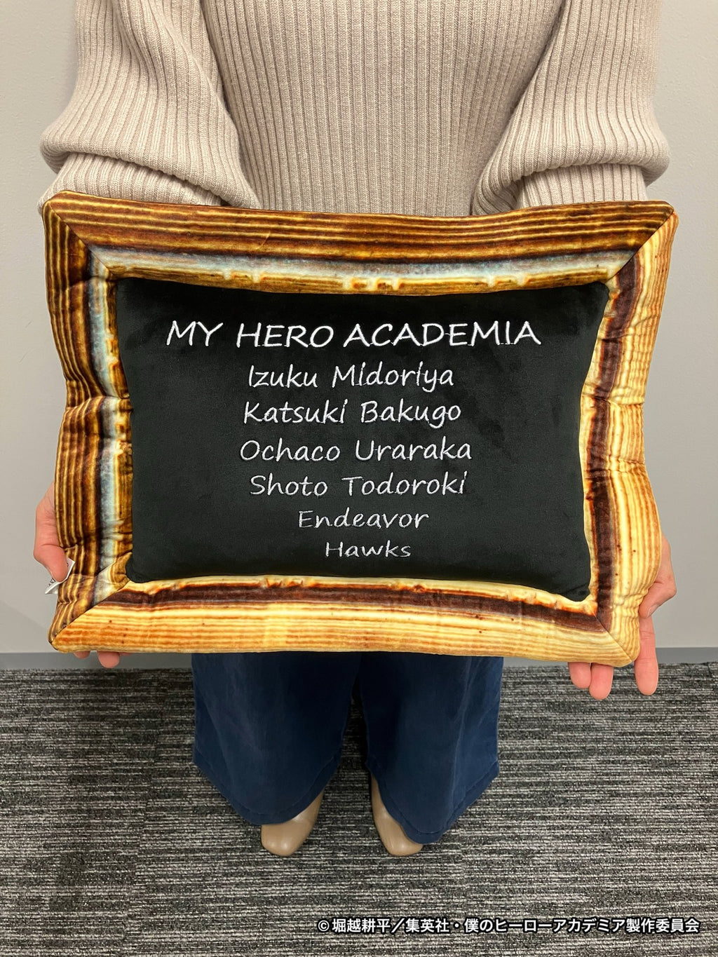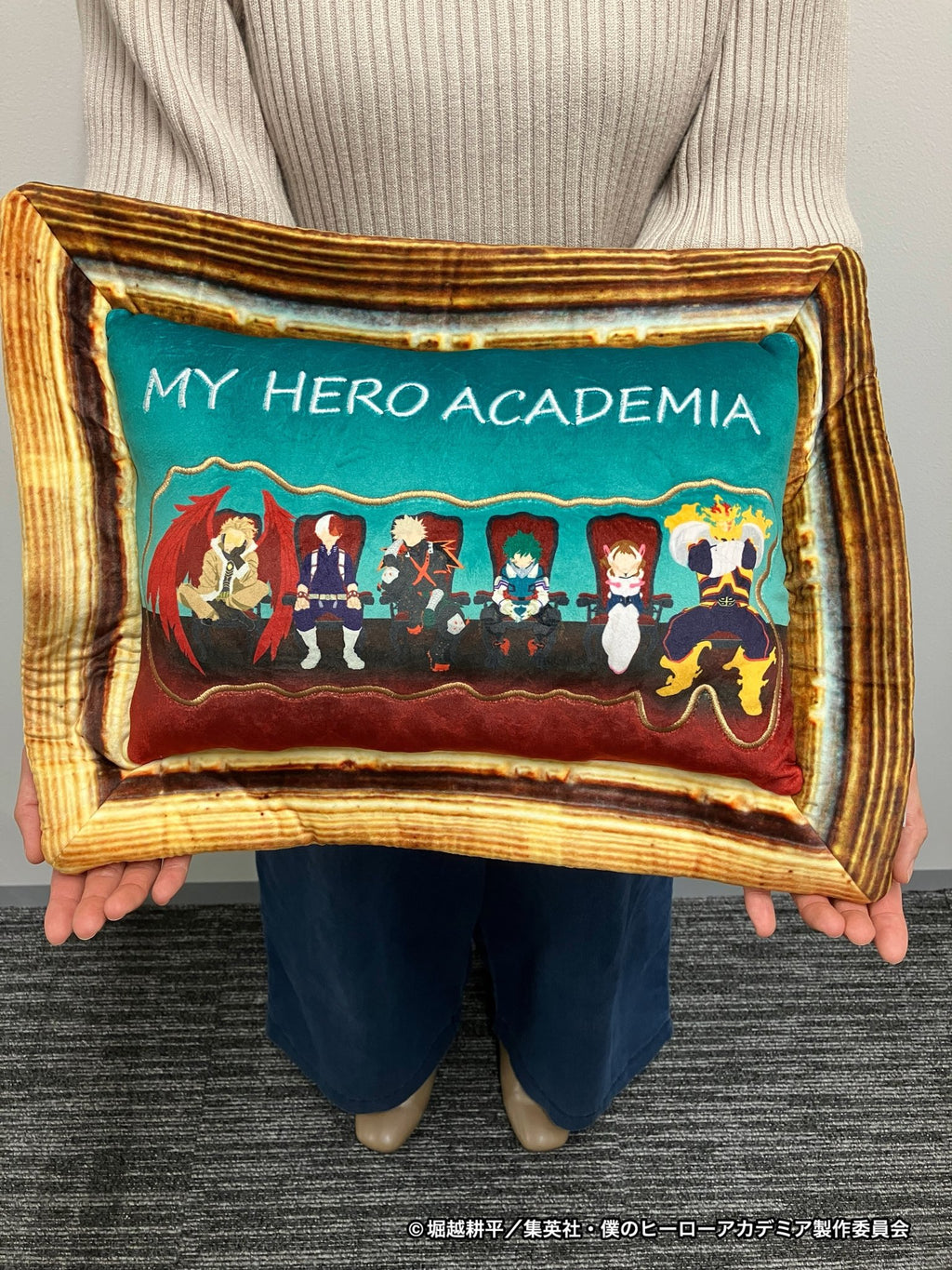 2022年に登場した描き下ろしビジュアル「座れ!イス!」のアートを使用したクッションが登場! もちもち素材で触り心地のよいクッションです。